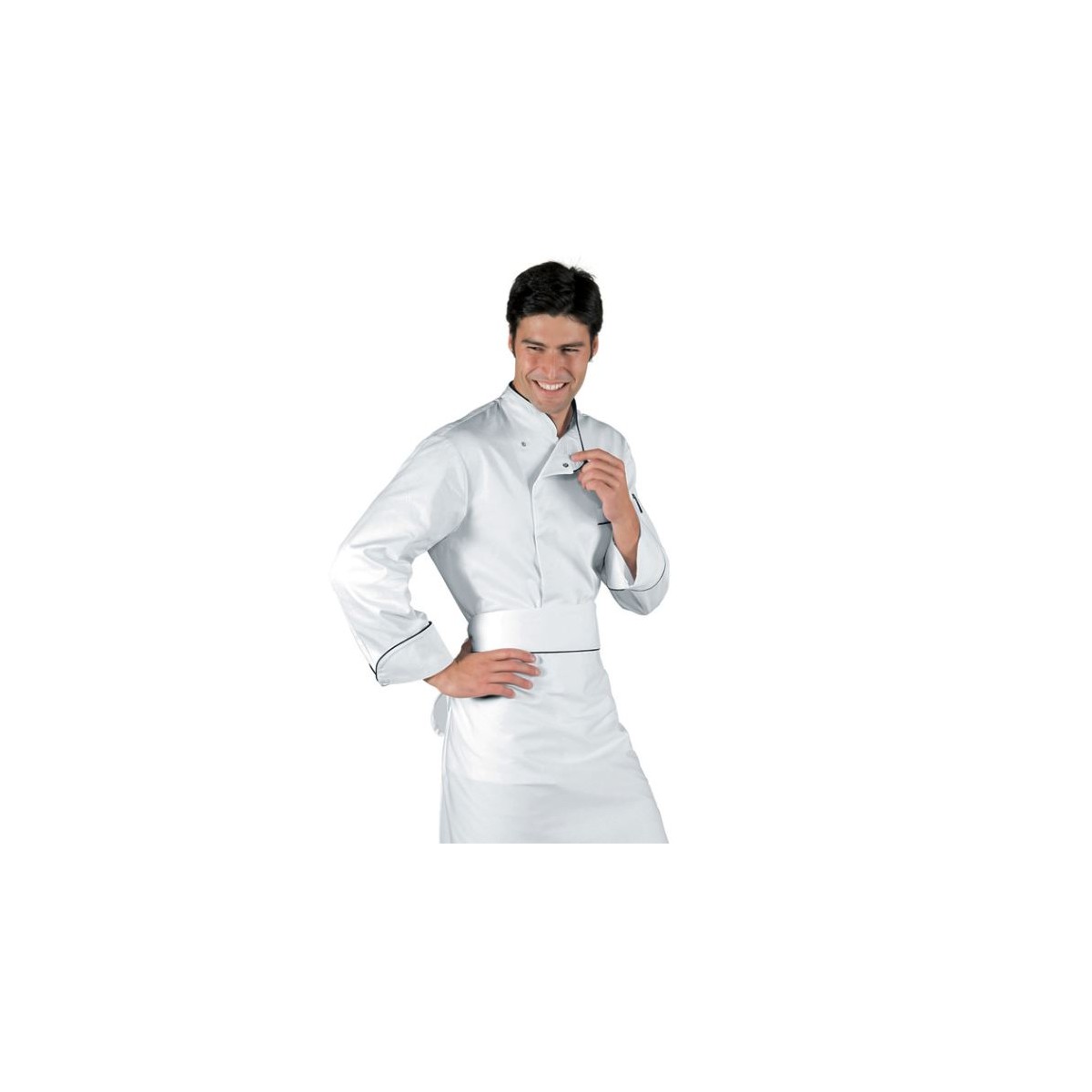 La giacca cuoco Bilbao bianco/nero Isacco è realizzata in 100% cotone 210 gr/mq. Una linea moderna con manica lunga e bottoni a pressione. Un modello con rete d'areazione ascellare per migliorare la traspirazione e il comfort durante il lavoro. Modello uomo. Colore bianco profilato nero. 100% cotone 210 gr/mq Manica Lunga,Bottoni a Pressione Taschino Manica Sinistra Taschino Lato Cuore