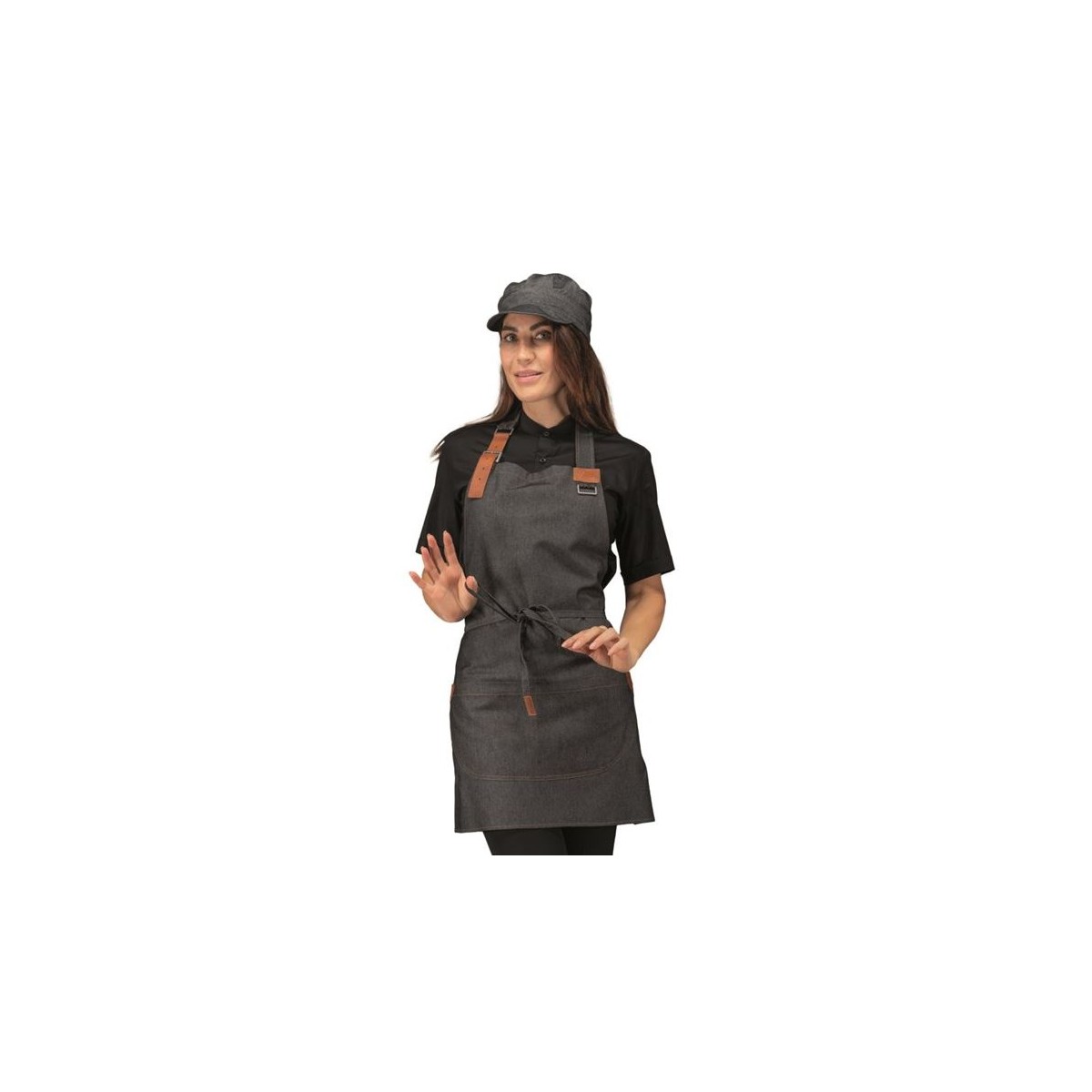 Grembiule corto Kansas nero jeans Isacco