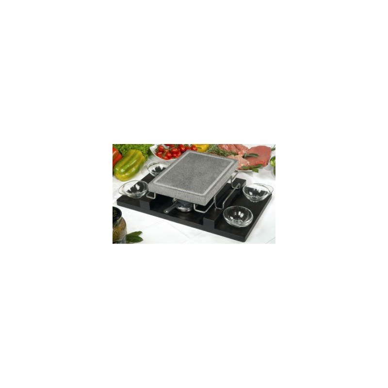 Piastra lavica rett.stand in acciaio inox e vassoio in legno