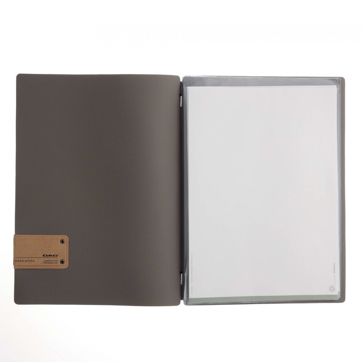 Porta menu 23,2x31,8 cm (A4) etichetta PATCH "menu" 2 buste JUTA GRIGIO 1