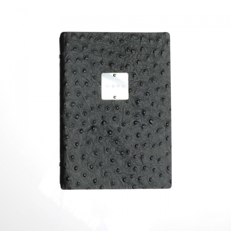 Porta menu in vera pelle rigenerata - formato 16,5x23,1 cm (GOLFO) - colore NERO STRUZZO - 2 buste