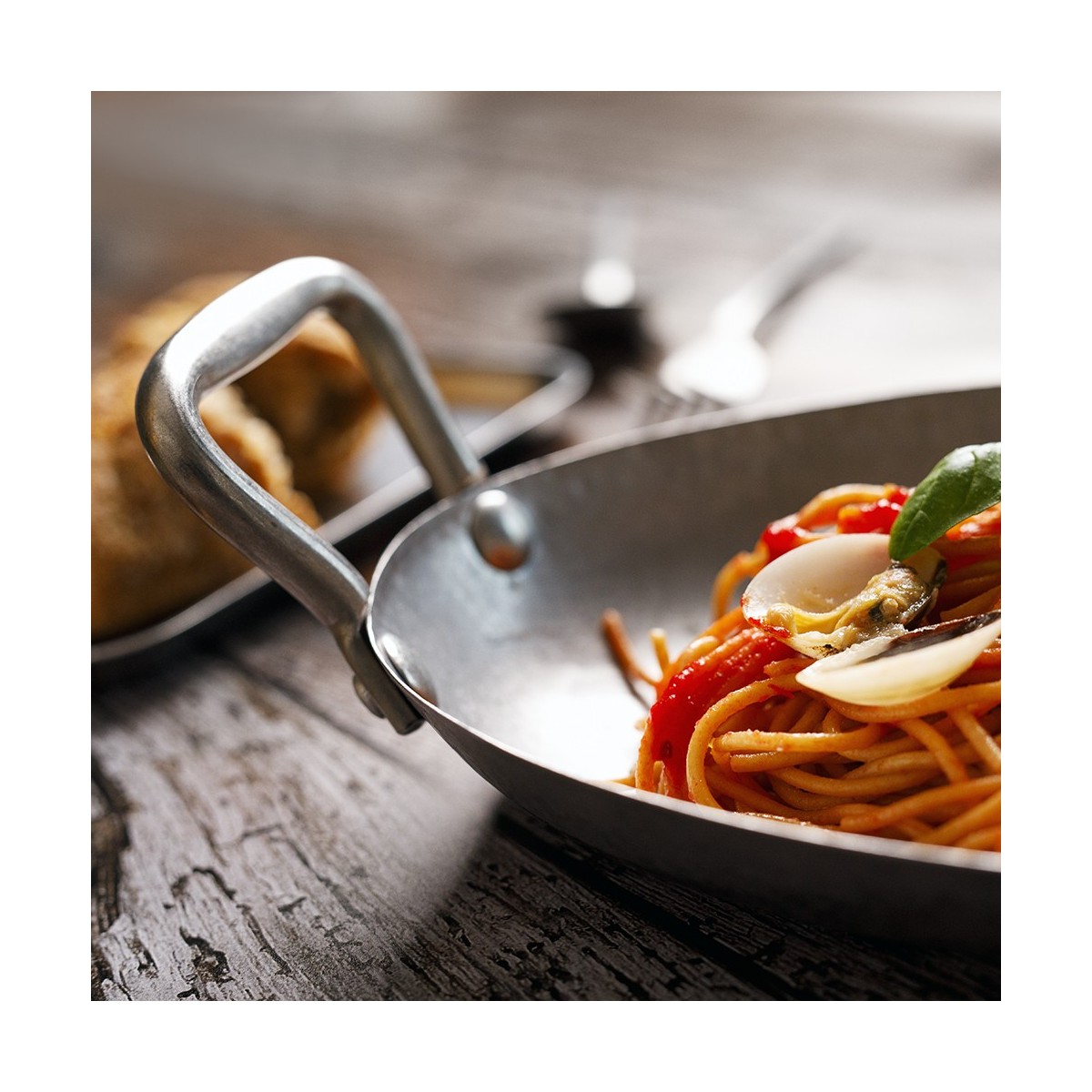 Tegame rettangolare della linea Tex-Mex, realizzato in acciaio inox resistente e di alta qualità. Dimensioni 28x18 cm, ideale per cotture uniformi e presentazioni in stile rustico o etnico. Robusto, facile da pulire, adatto all’uso professionale.