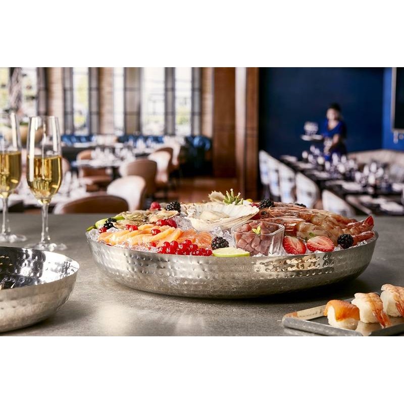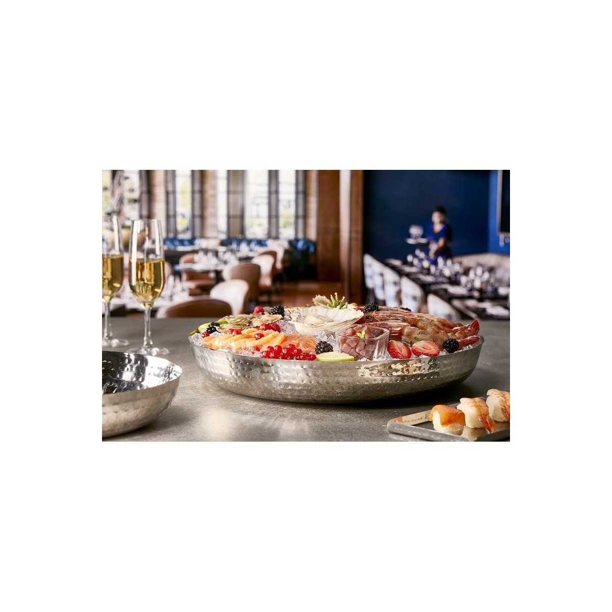 Vassoio rotondo in acciaio martellato, finitura a specchio cm.40