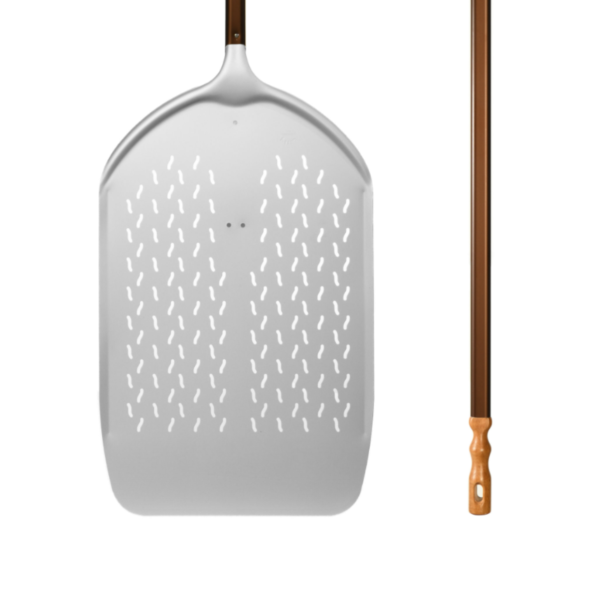 La pala forata Modena è progettata per infornare pizza al metro, ma si rivela estremamente versatile anche per la gestione di prodotti da forno a lunga lievitazione.