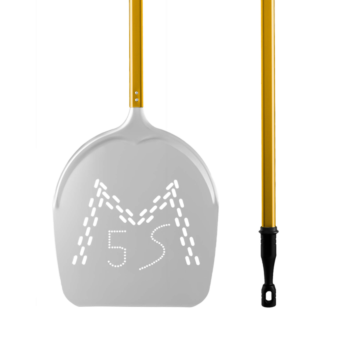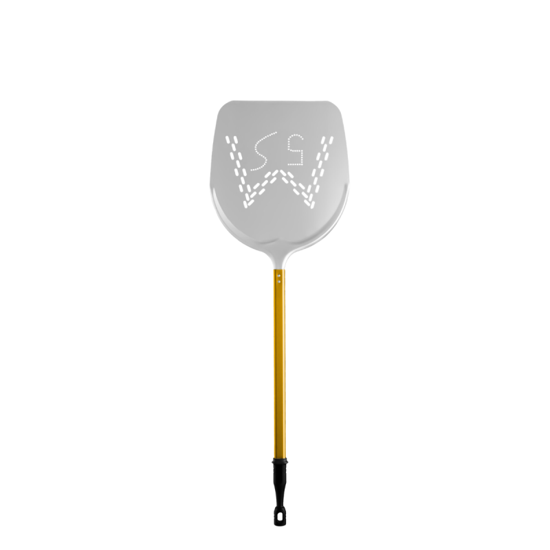La pala è parzialmente forata, caratteristica che consente di ridurre il peso e migliorare la gestione della farina in eccesso. La punta assottigliata facilita inoltre l’ingresso sotto la pizza, rendendo più semplice e preciso il movimento in fase di infornata.