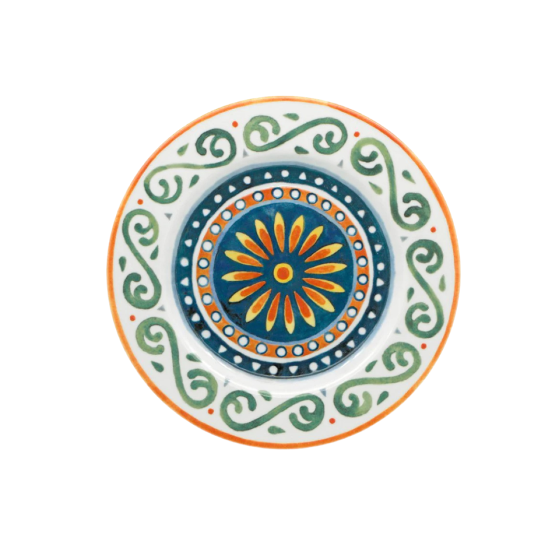 Il Piatto Pizza Napoli 31 cm Capri di Saturnia è realizzato in porcellana di alta qualità, caratterizzato da un elegante decoro che unisce elementi classici e moderni. La tecnica affossante utilizzata per applicare il colore crea un piacevole gioco di rilievi sulla superficie decorata, conferendo al piatto un aspetto distintivo e raffinato