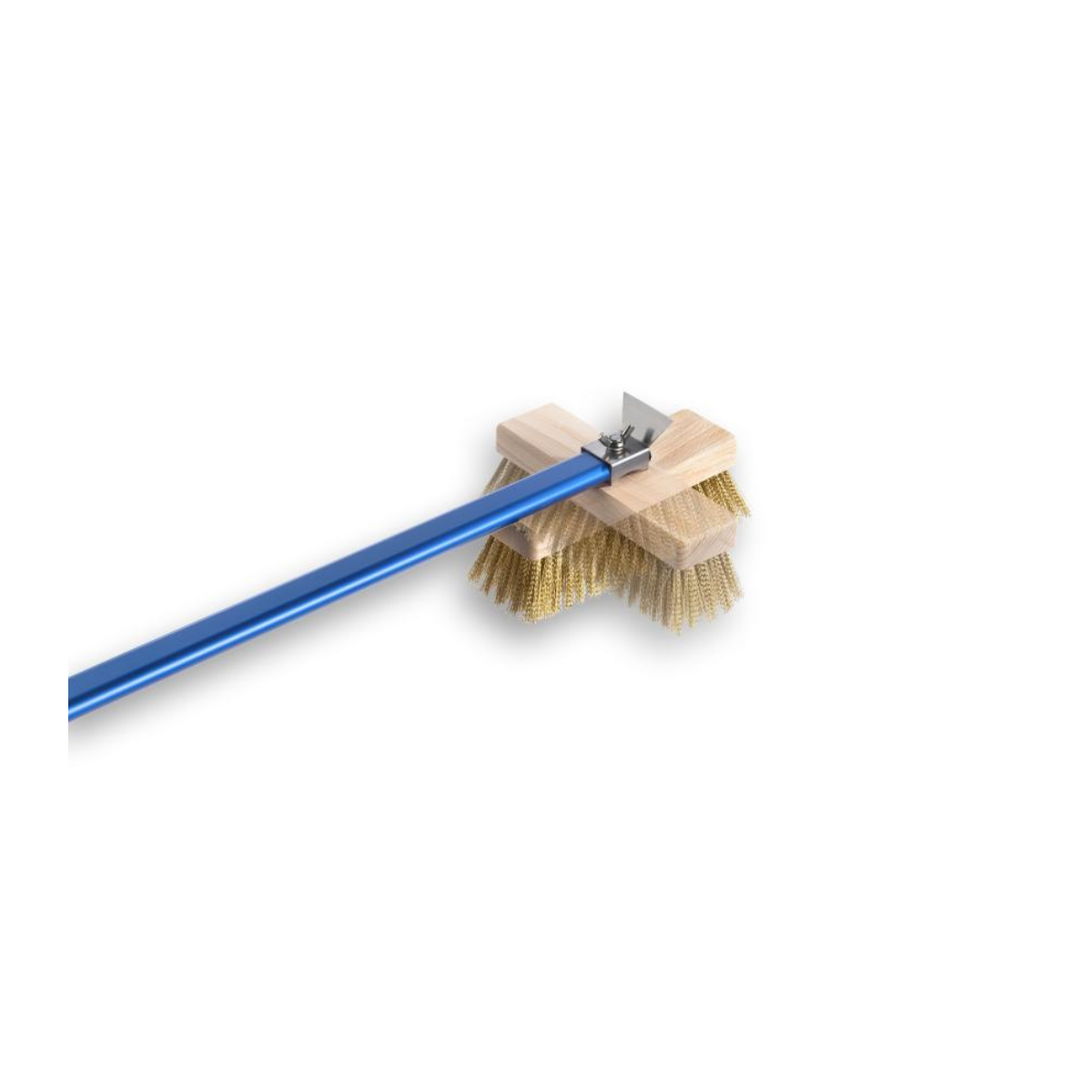 Spazzola professionale con setole in ottone 20x6, 6 cm e raschietto posteriore in acciaio inox. Manico in alluminio anodizzato.