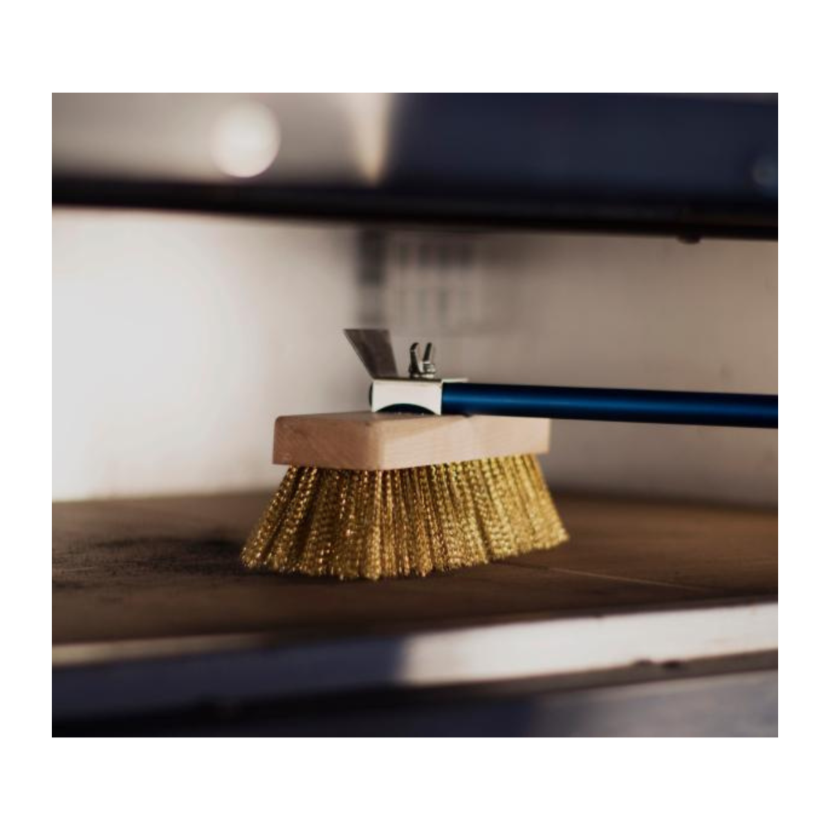 Le setole di ottone consentono una pulizia veloce e più efficiente della pietra refrattaria da residui alimentari, farina o cenere.