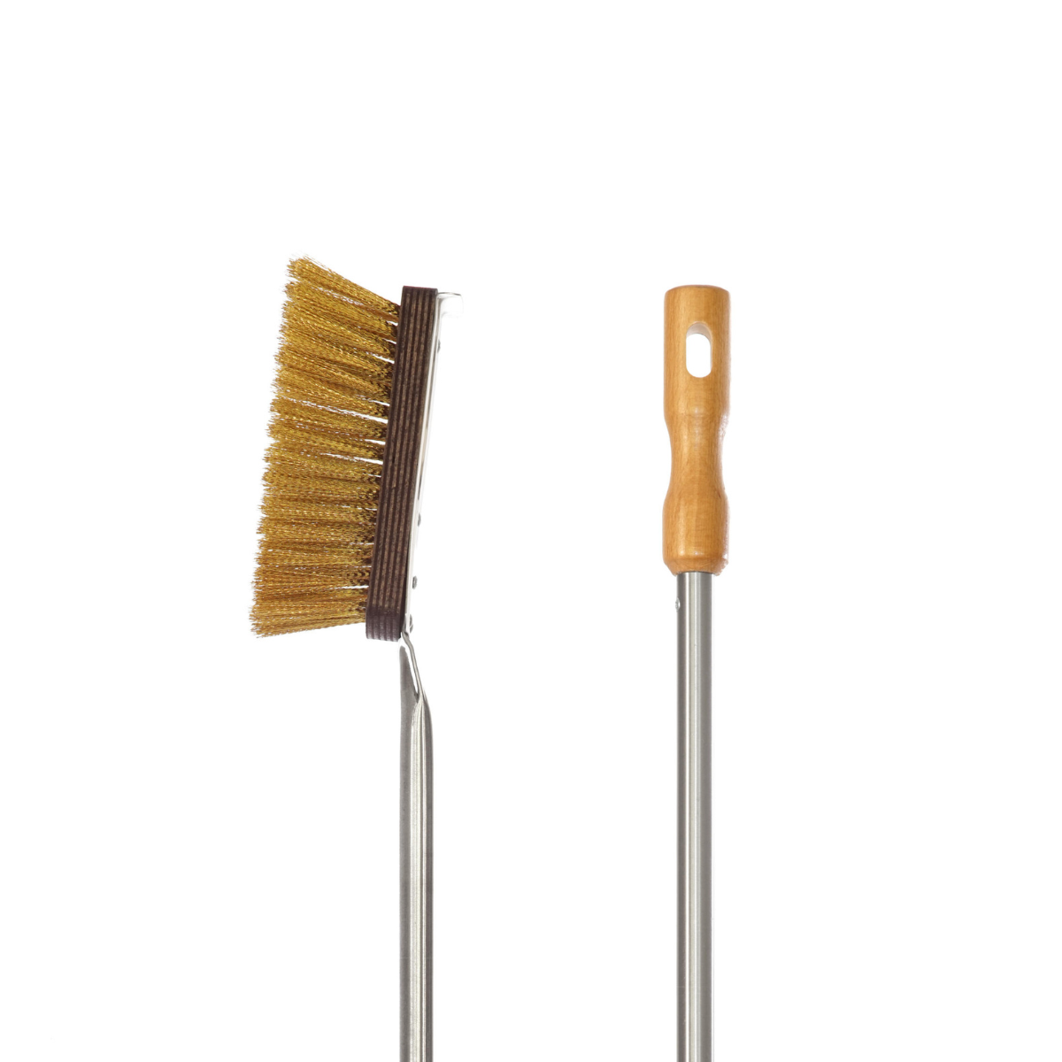 La spazzola in ottone è flessibile e resistente al calore, perfetta per spazzolare il forno da farina e cenere senza graffiare pesantemente il piano di cottura. Grazie alla sua staffa con raschietto è possibile rimuovere con facilità le incrostazioni più ostinate.