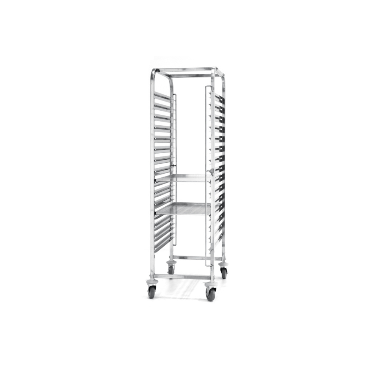 Il carrello portateglie per 15 teglie 600 × 400 mm è progettato per garantire praticità, solidità e sicurezza nelle cucine professionali, nei laboratori di panificazione e pasticceria. L’interspazio di 80 mm tra i livelli permette un inserimento facile e ordinato delle teglie, anche quando calde o cariche.