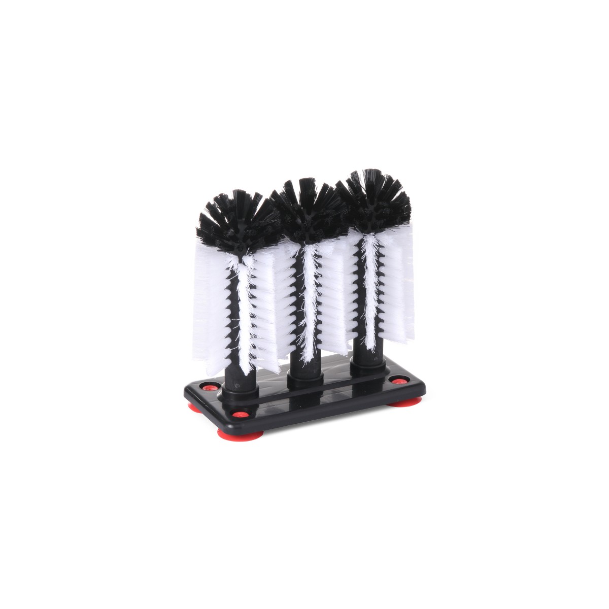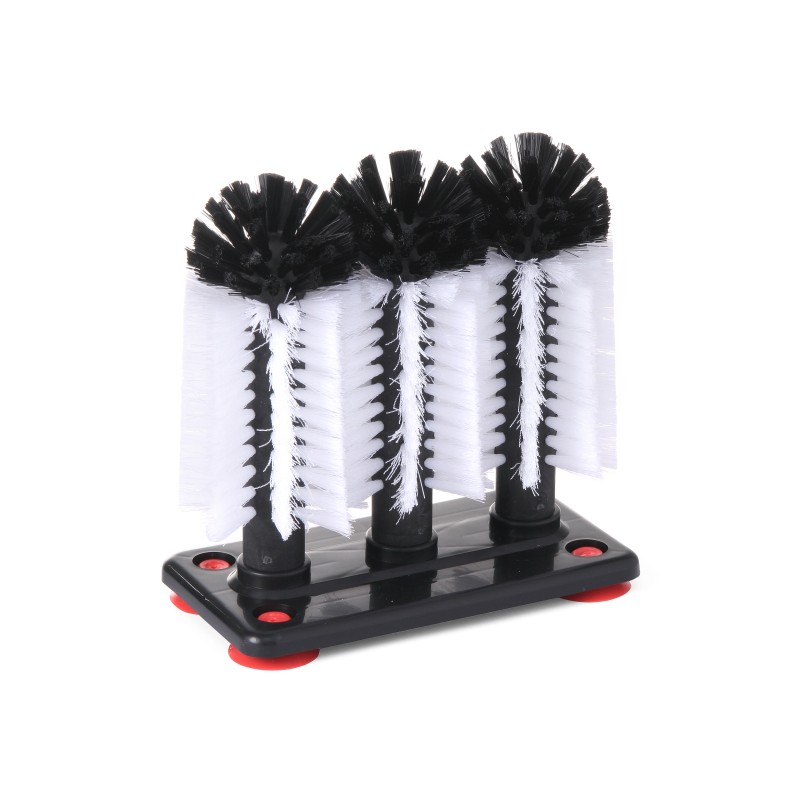 Realizzata in plastica resistente, è dotata di 3 spazzole in nylon per una pulizia efficace dell’interno e dell’esterno dei bicchieri.La base con 4 ventose garantisce stabilità durante l’uso su superfici lisce.
