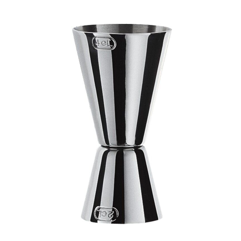 Il misurino doppio in acciaio inox da 2 e 4 cl è un accessorio essenziale per la miscelazione professionale. Progettato per garantire precisione e praticità, permette di dosare con accuratezza liquori e ingredienti per cocktail bilanciati.
