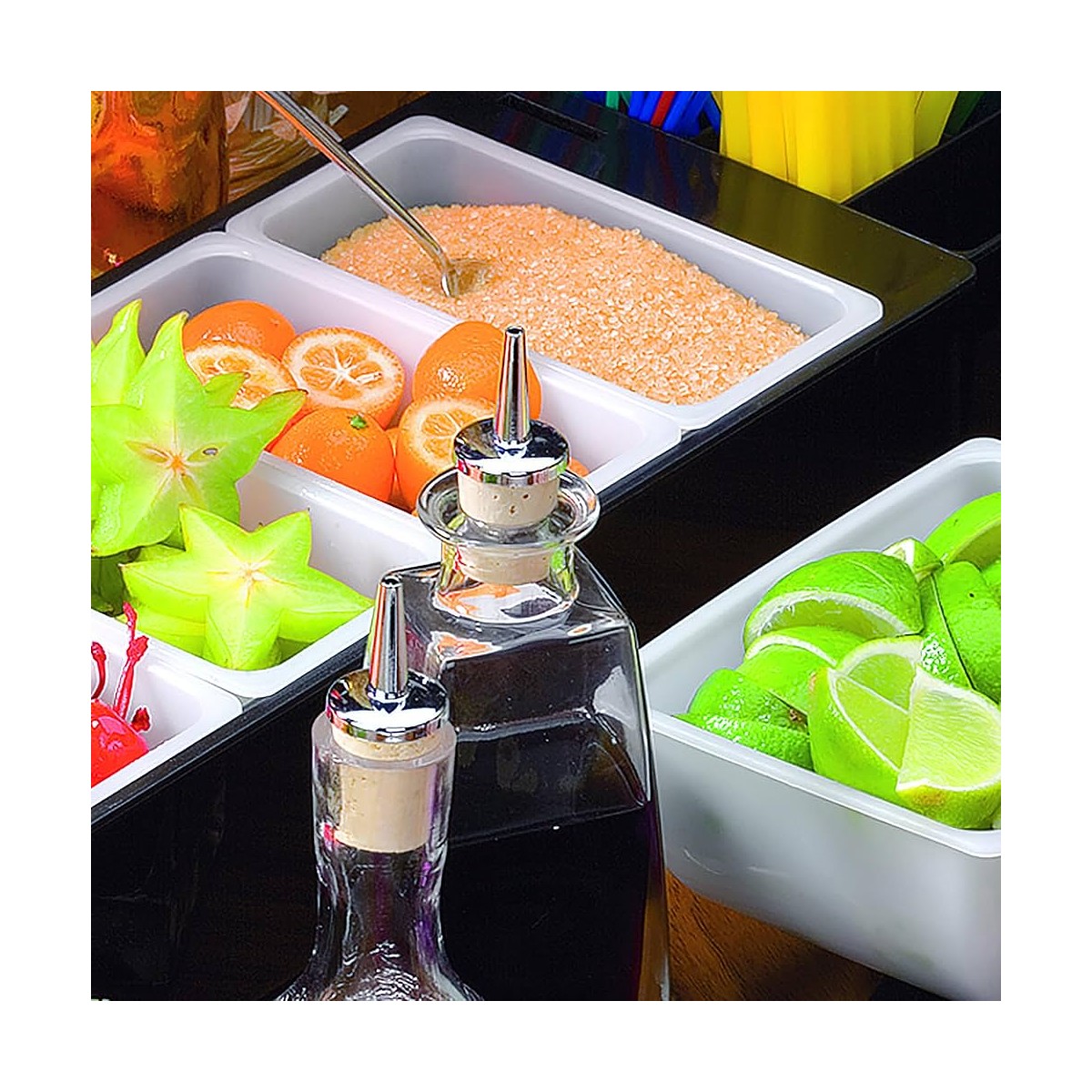 Realizzato in ABS resistente, questo portacondimenti a 4 scomparti è perfetto per bar e locali che vogliono preparare cocktail e drink con guarnizioni curate e professionali.