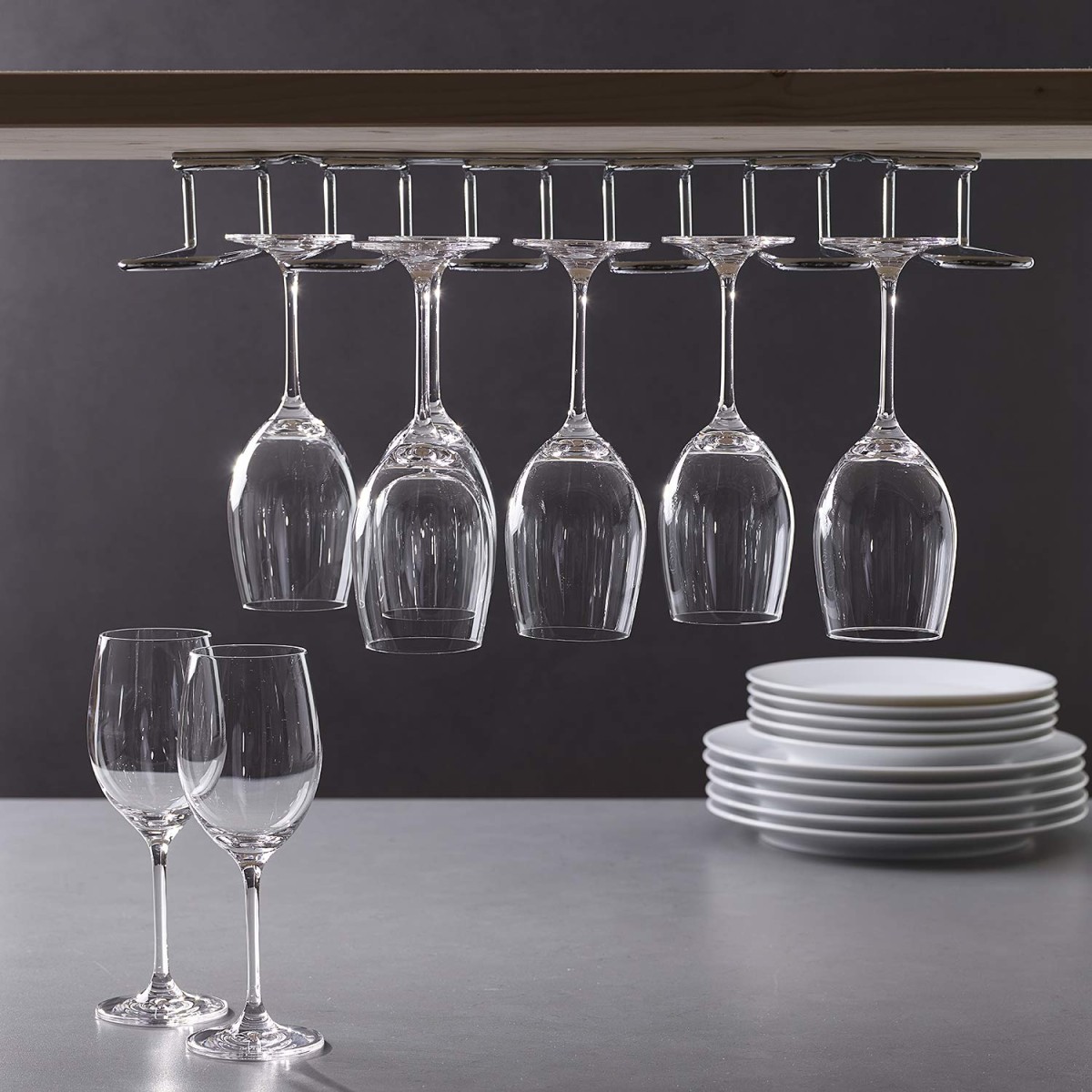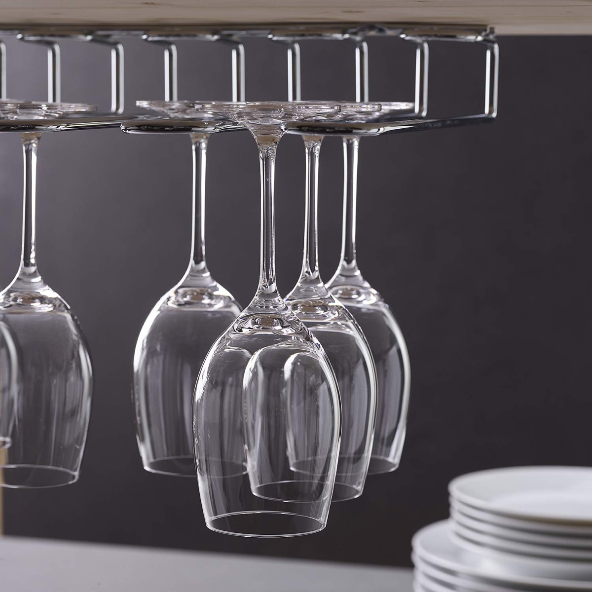 La rastrelliera porta bicchieri con fissaggio sospeso è progettata per conservare bicchieri in modo pratico, ordinato e sicuro, sfruttando lo spazio verticale.