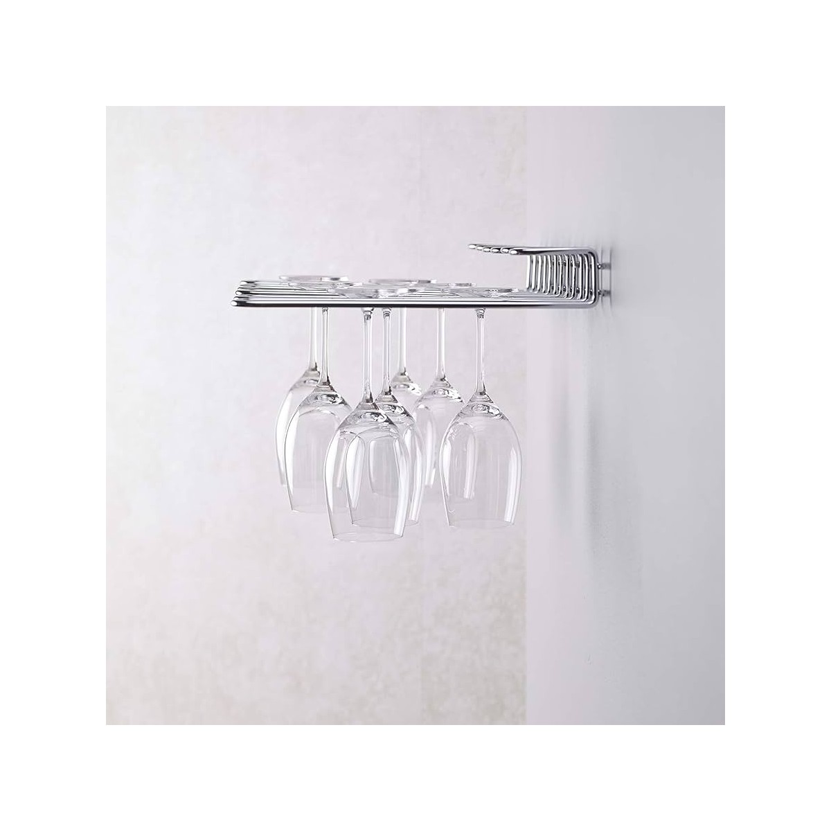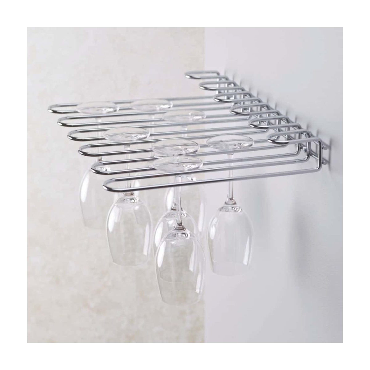 La rastrelliera porta bicchieri con fissaggio sospeso è progettata per conservare bicchieri in modo pratico, ordinato e sicuro, sfruttando lo spazio verticale.