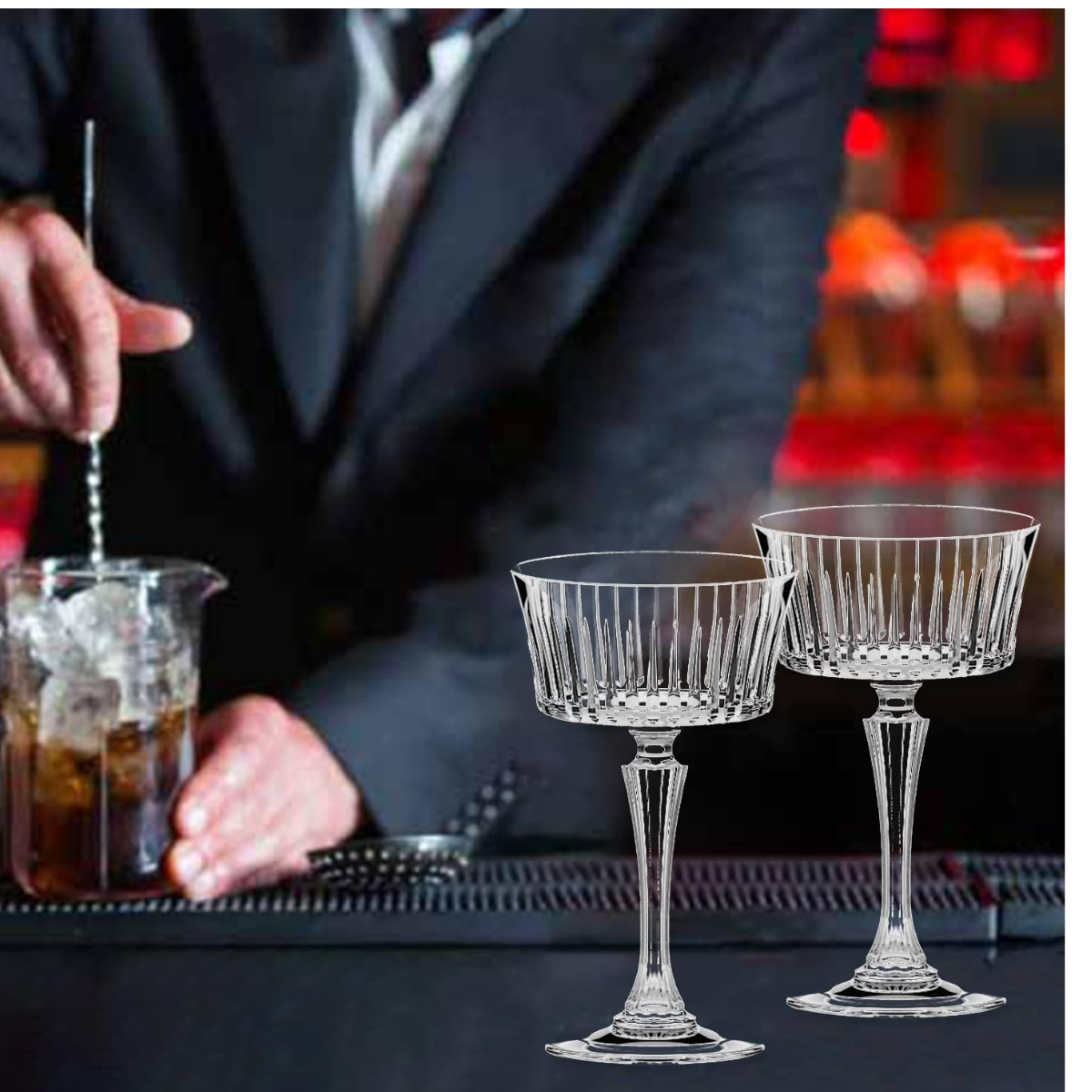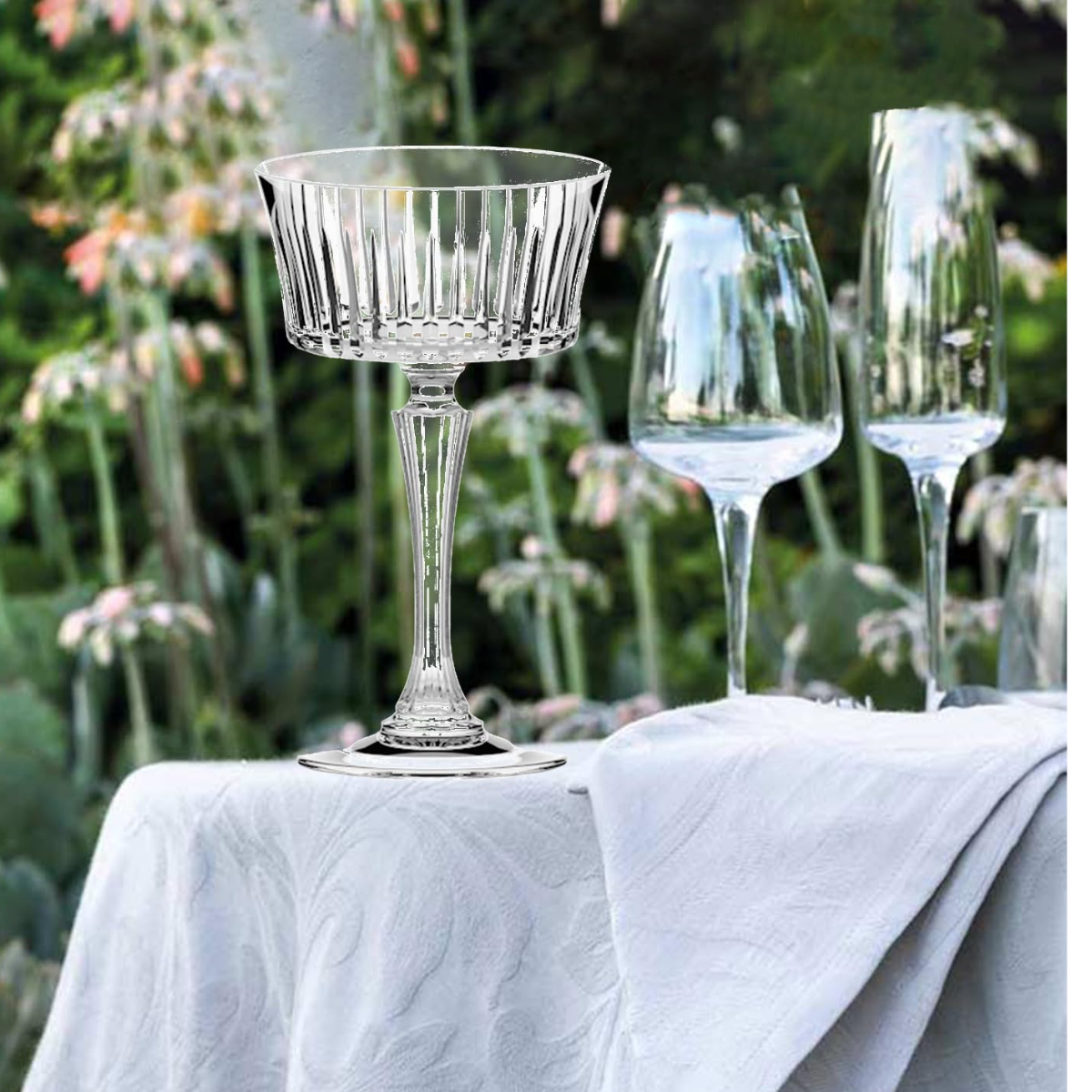 Caratterizzati da un design raffinato e decorazioni dal gusto intramontabile, questi calici valorizzano la presentazione di Champagne, spumanti e cocktail, aggiungendo un tocco di classe alla tavola.