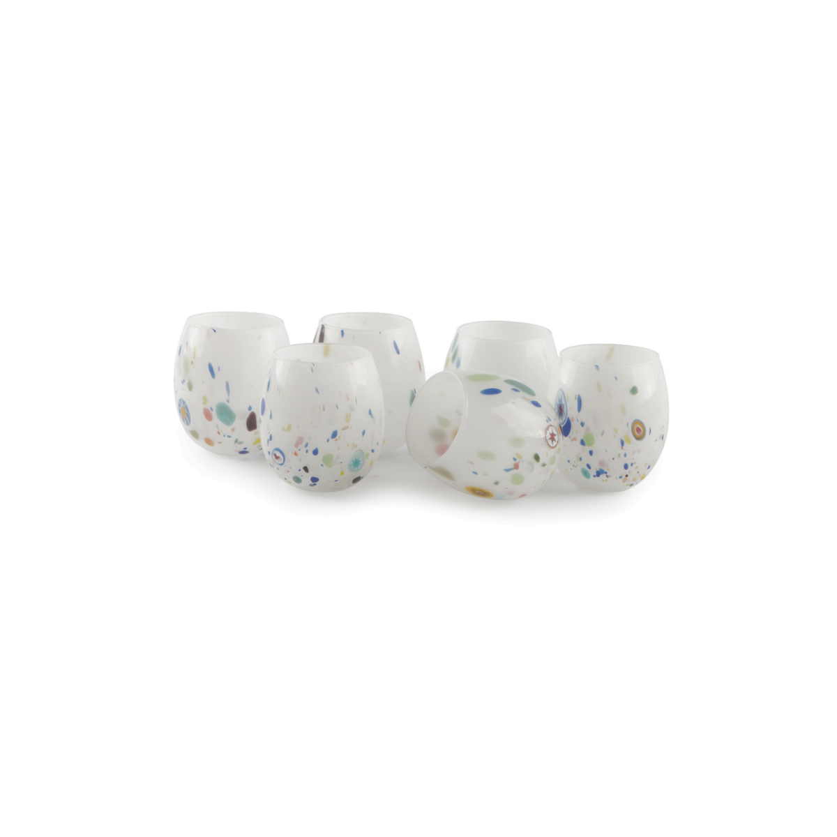Il bicchiere acqua Murano da 35 cl, colore bianco, fa parte della prestigiosa Collezione Murano, interamente realizzata a mano in Italia. Ogni pezzo è frutto di un’attenta lavorazione artigianale, ispirata alle tradizionali murrine della famosa isola veneziana di Murano.