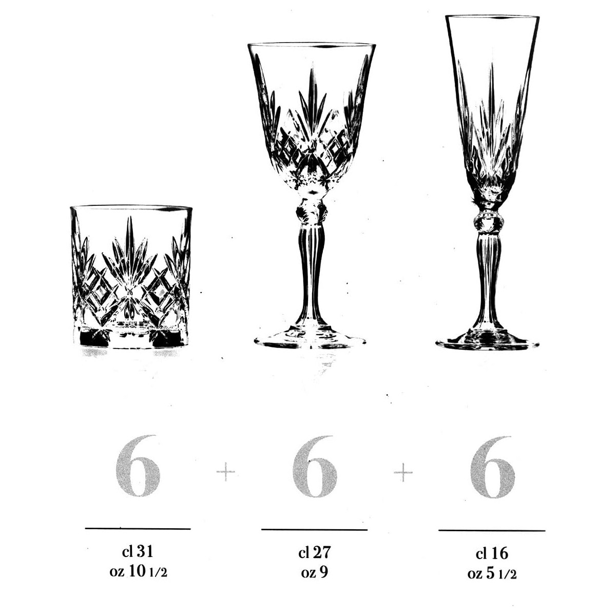 Composto da: 6 calici cl 27 cm 9x20 h;