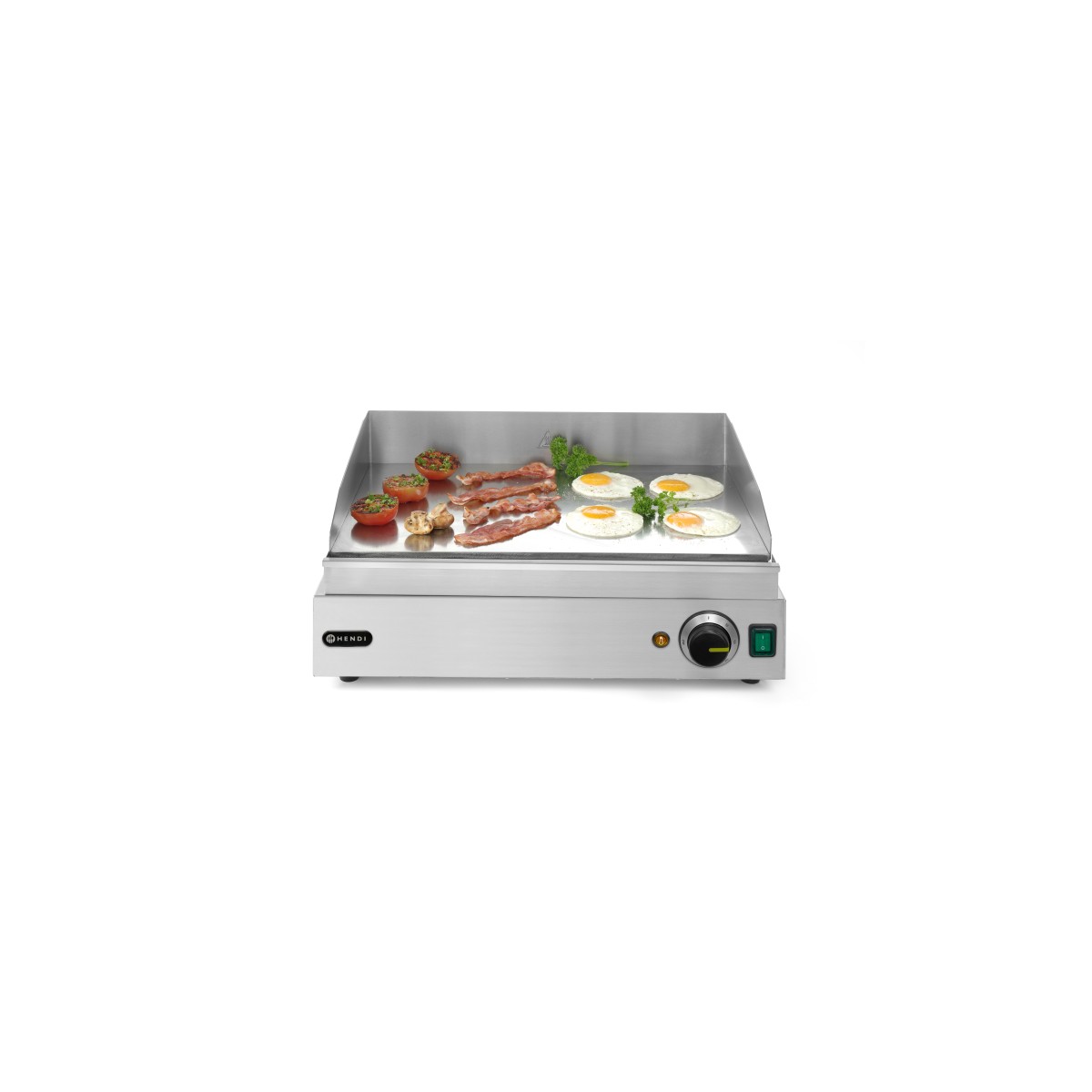 Struttura in acciaio inox La consistente cromatura della piastra (9mm) facilita la pulizia Con cassetto raccolta grassi ed alto paraspruzzi Spia di controllo di raggiungimento della temperatura Temperature regolabili fino a 300°C Con interruttore termico di sicurezza Costruito per un uso prolungato Interruttore acceso/spento con indicatori luminosi Con piedini antiscivolo Superficie utile 518x328 mm, liscia.