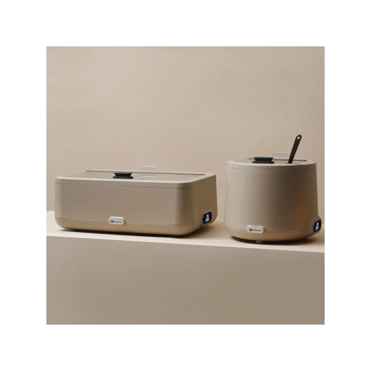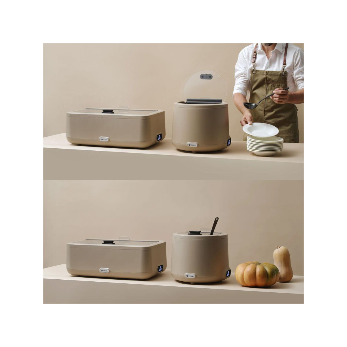 Design elegante e funzionale del designer olandese Robert Bronwasser. Corpo realizzato in polipropilene resistente alle alte temperature. Contenitore removibile GN1/1 (H)100 mm realizzato in acciaio inossidabile AISI 304, facile da pulire. Elemento riscaldante realizzato in acciaio inossidabile AISI 304 e collocato nel contenitore dell’acqua per un trasferimento efficiente del calore. Coperchio in vetro temperato dotato di impugnatura isolata, tacca centrale e cerniera in alluminio. Il design del coperchio in due parti riduce la perdita di calore aprendosi, mantenendo al contempo condizioni igieniche ottimali.