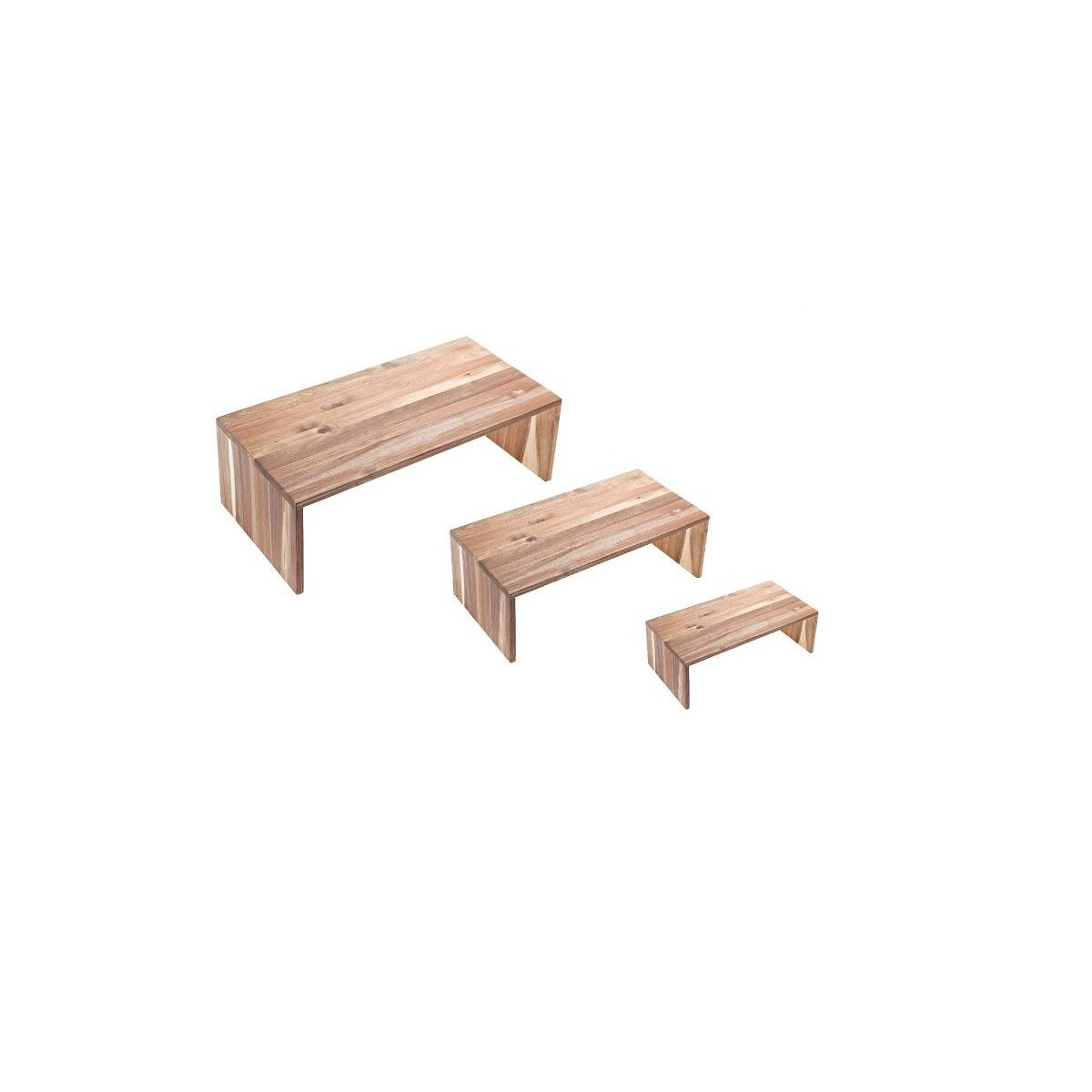 Il set espositori buffet in acacia Maxi – 3 pezzi è pensato per allestimenti professionali di grande impatto visivo. Ideale per ristoranti, hotel, bar e servizi catering, consente di creare esposizioni scenografiche e funzionali su più livelli.