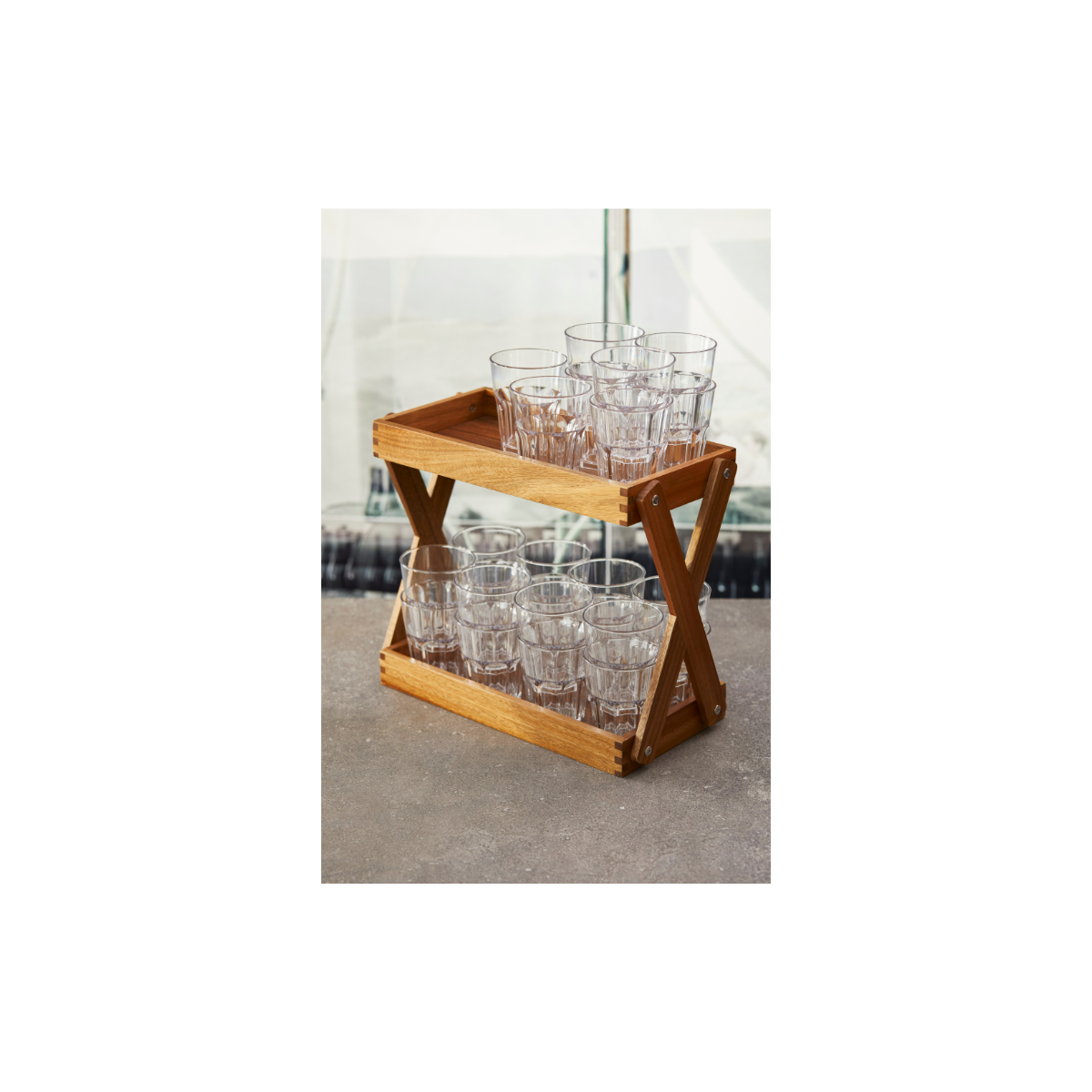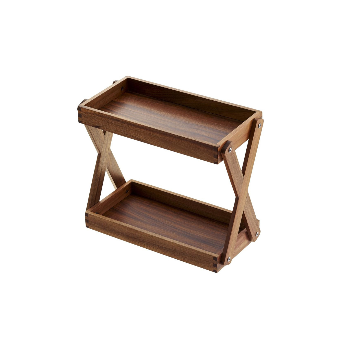 Realizzato in legno di acacia resistente, garantisce solidità e durata nel tempo, unendo praticità e design naturale. La struttura compatta e stabile permette di presentare antipasti, finger food, dolci o prodotti da forno in modo ordinato, valorizzando il buffet e ottimizzando lo spazio disponibile.