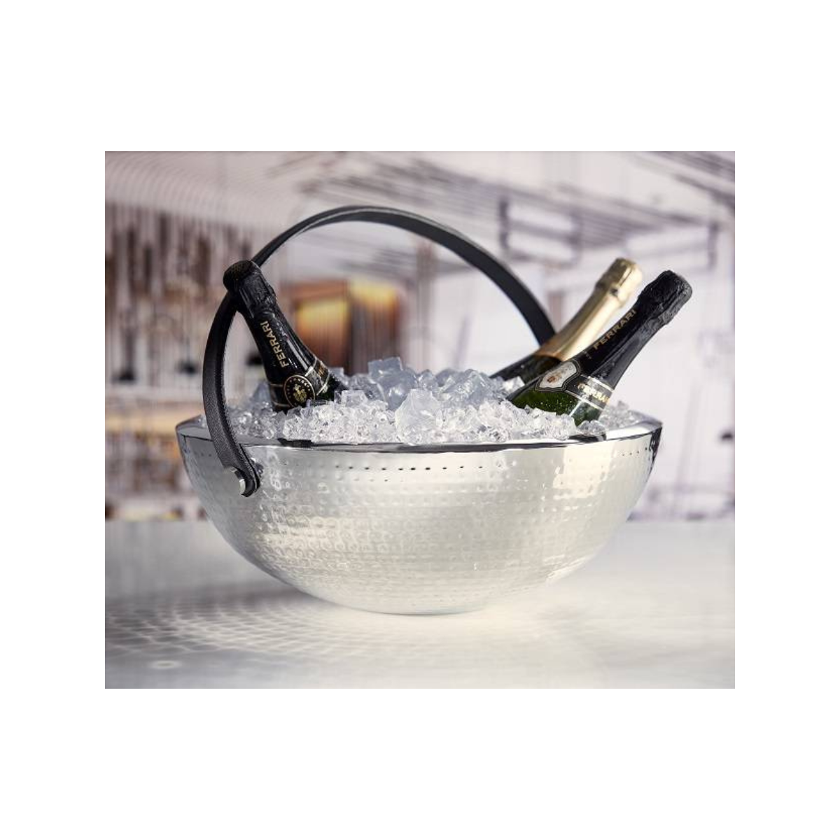 Secchiello portaghiaccio in acciaio martellato con manico in ecopelle 43cm