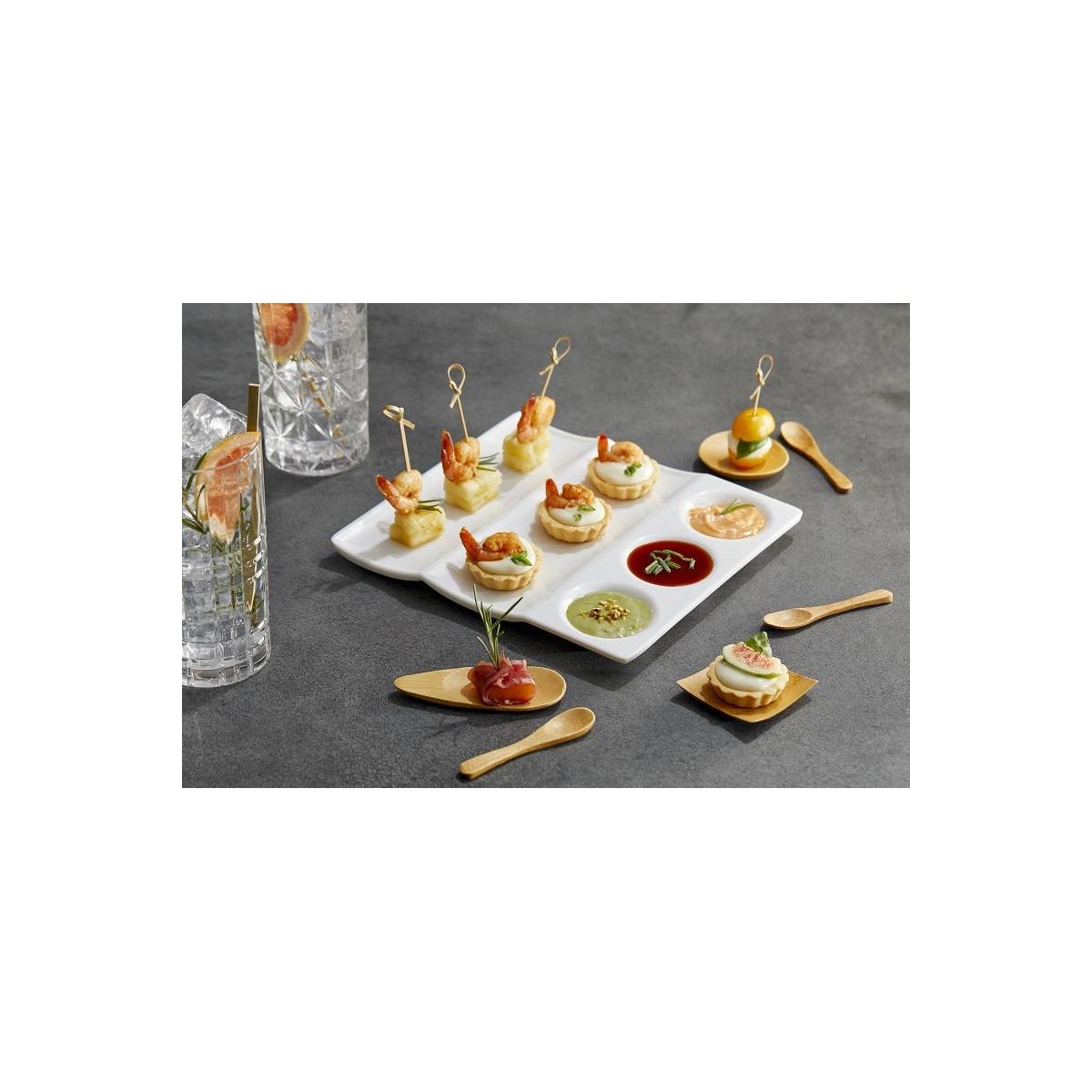 Piatto in melamina con scomparti bianco, finitura lucida cm 23x21x1,5 cm
