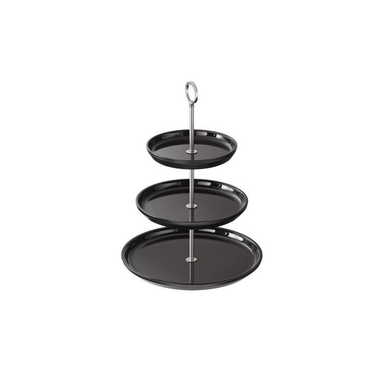 Set alzata con tre piatti in melamina nera Ø20-25-32 h.47