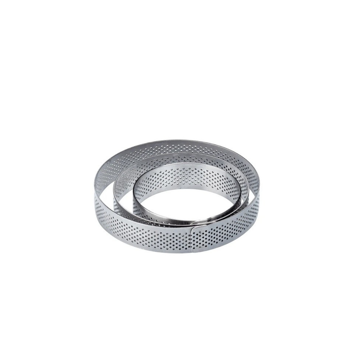 Fascia inox microforata per crostate monoporzione – modello tondo XF1120 Ø110×20 h progettata per garantire una cottura uniforme e professionale. Realizzata in acciaio inox di alta qualità, presenta una microforatura che assicura una perfetta circolazione del calore, favorendo una doratura regolare e una struttura croccante dell’impasto.