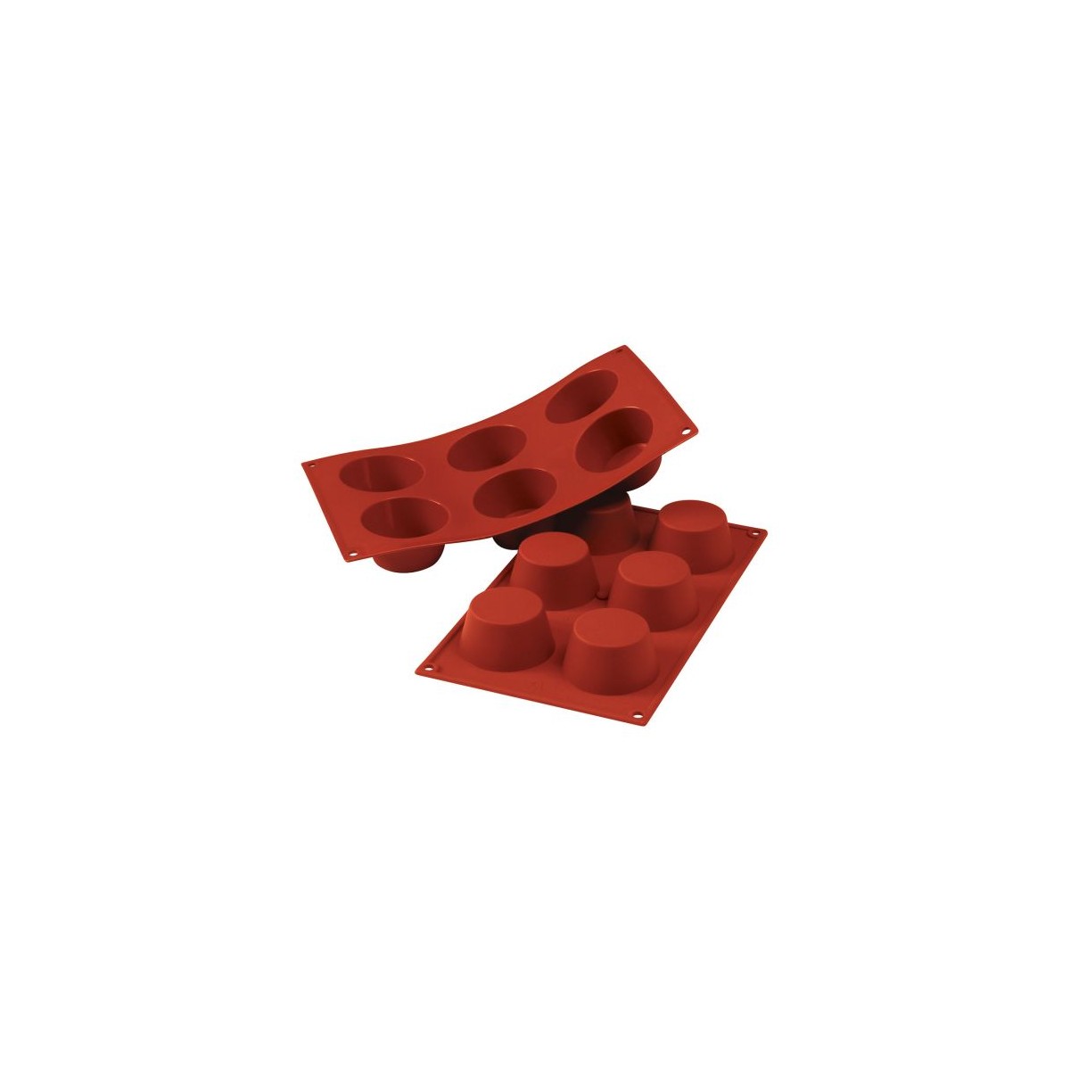 Gli stampi in silicone FORMAFLEX sono progettati per offrire creatività e precisione nella realizzazione di monoporzioni e mignon, sia dolci che salate. Questo modello presenta 6 impronte da Ø 70 mm con altezza 40 mm e volume 130 ml, perfette per preparazioni eleganti e uniformi.