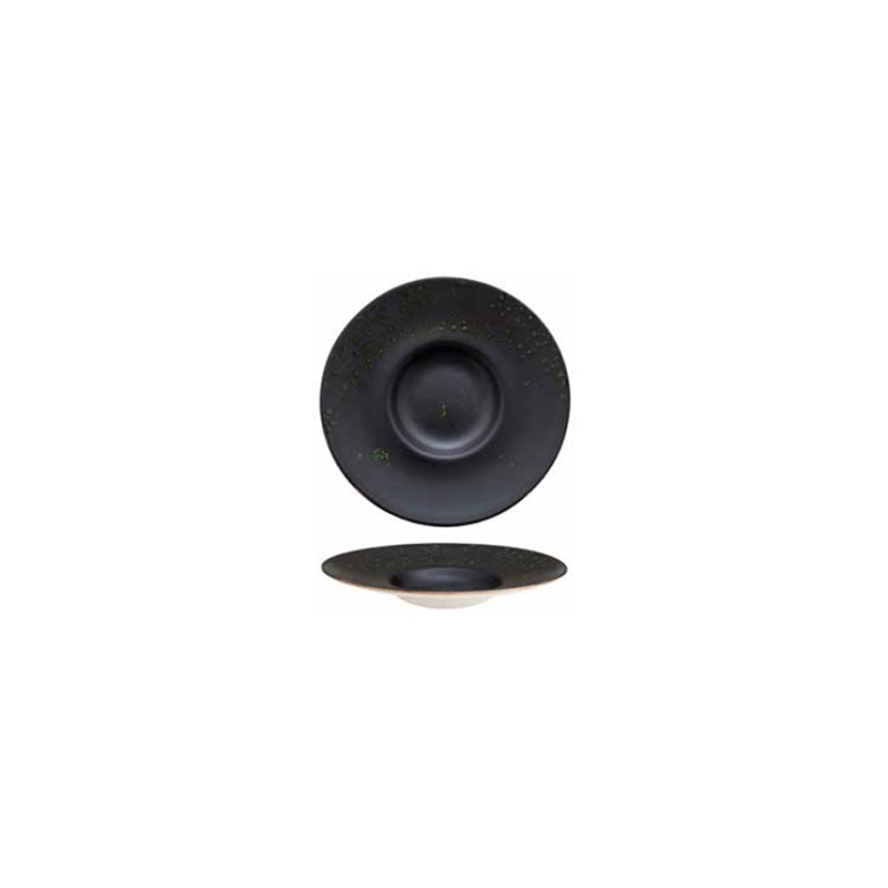 PIATTO PIANO NERO CON DECORI VERDI IN CERAMICA CM.28