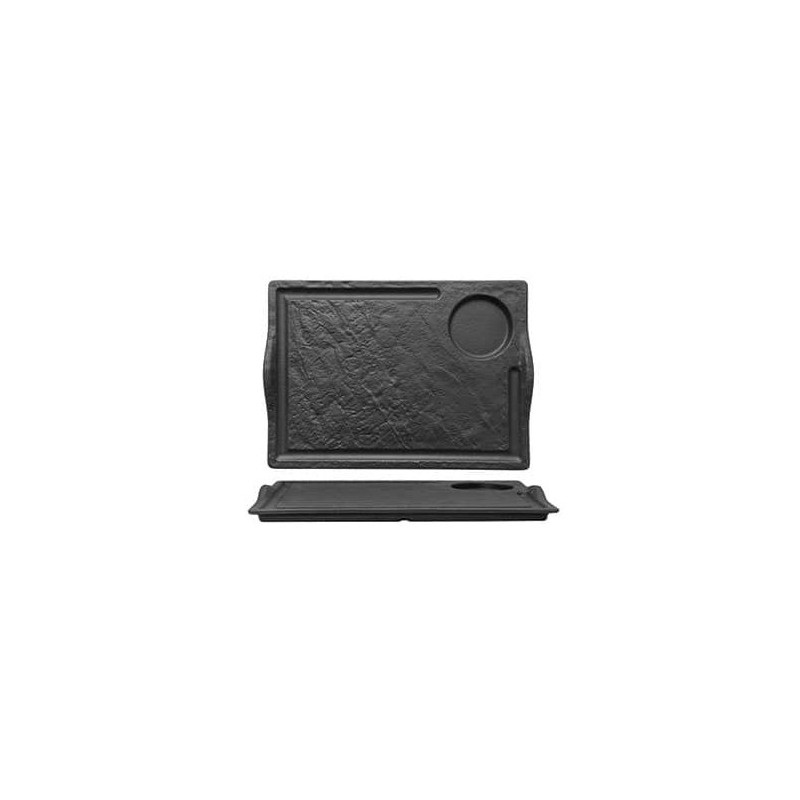 Piatto bistecca effetto pietra con foro 33x24 nero