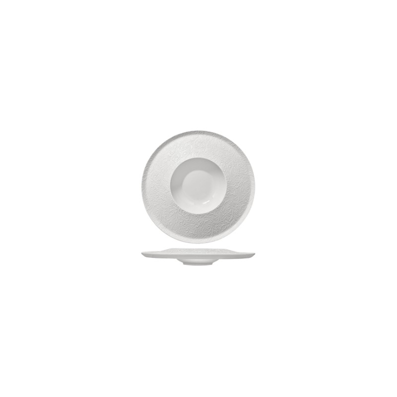 Questo piatto presenta un design elegante e ricercato che lo rende ideale per ristoranti, hotel e catering che puntano su una mise en place raffinata e moderna.
