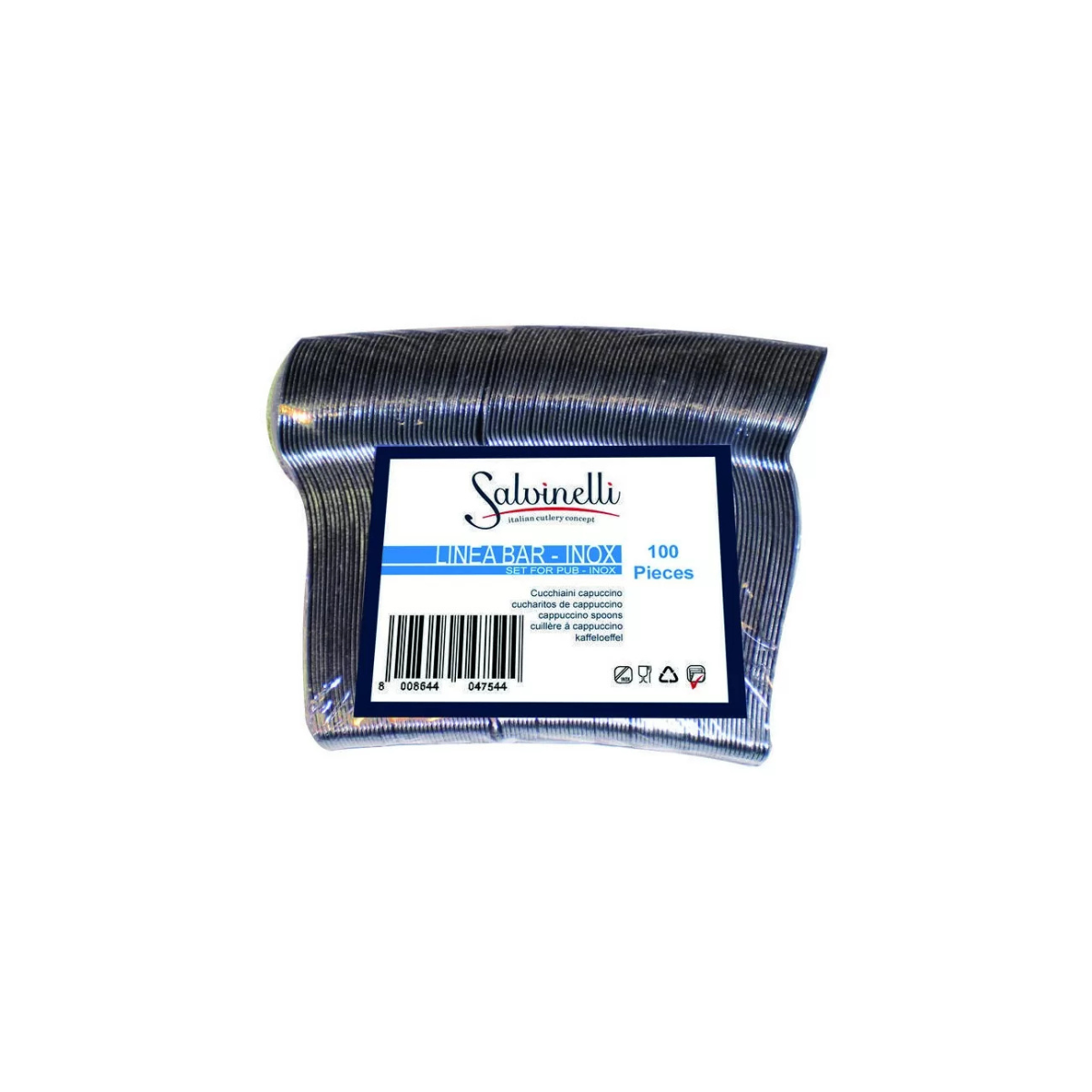 Flowpack di 100 cucchiaini caffè modello Rimini di Salvinelli con spessore 1 mm è la scelta perfetta per chi cerca eleganza e praticità nel servizio. Realizzati in acciaio inox 18-C nickel free, questi cucchiaini hanno una lunghezza di 11 cm, ideale per l'uso in tazze da caffè e piccole bevande.